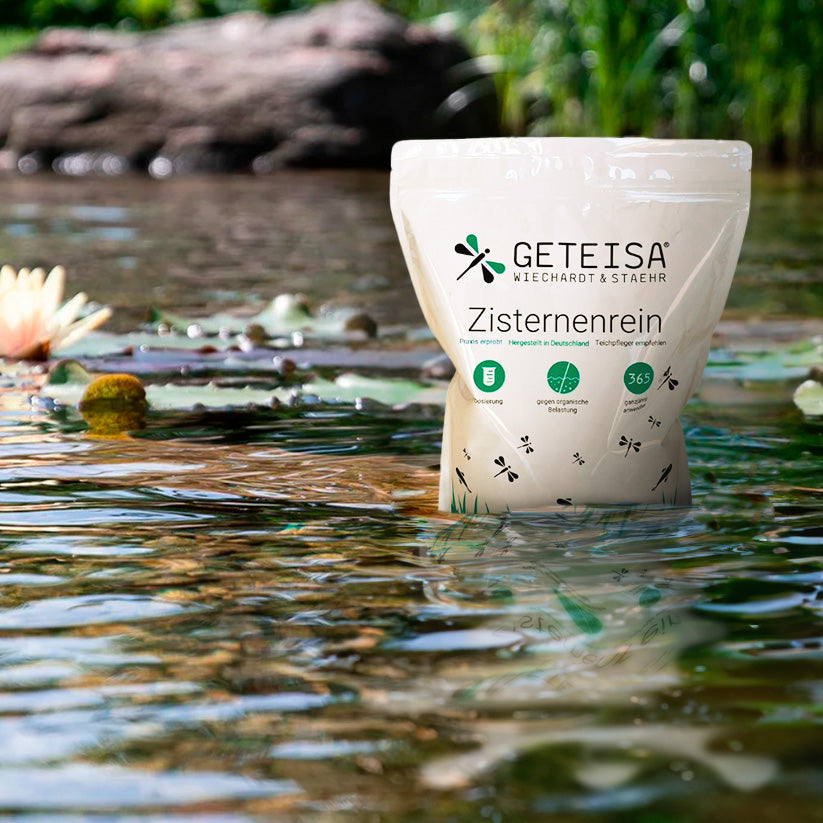 Zisternenrein von GETEISA ist unser Geheimtipp zur schnellen und regelmäßigen Zisternenpflege. Zisternenrein entfernt abgelagerte Sedimente wie Schlamm, Tannennadeln oder Blätter. Mit Aktivsauerstoff werden die Strukturen der Feststoffe gezielt angegriffen, zerstört und an die Oberfläche geschwemmt. Die Reste können dann bequem mit einem feinen Kescher abgefischt werden. Zisternenrein ist schnell und einfach anzuwenden, indem es mühelos auf die Wasseroberfläche gibt und nach wenigen Minuten erste Ergebnisse bezeugen kann. Selbstverständlich werden durch Zisternenrein keine Schadstoffe in das Wasser gebracht und es ist absolut ungefährlich. Zisternenrein sagt Schlamm und Dreck den Kampf an!